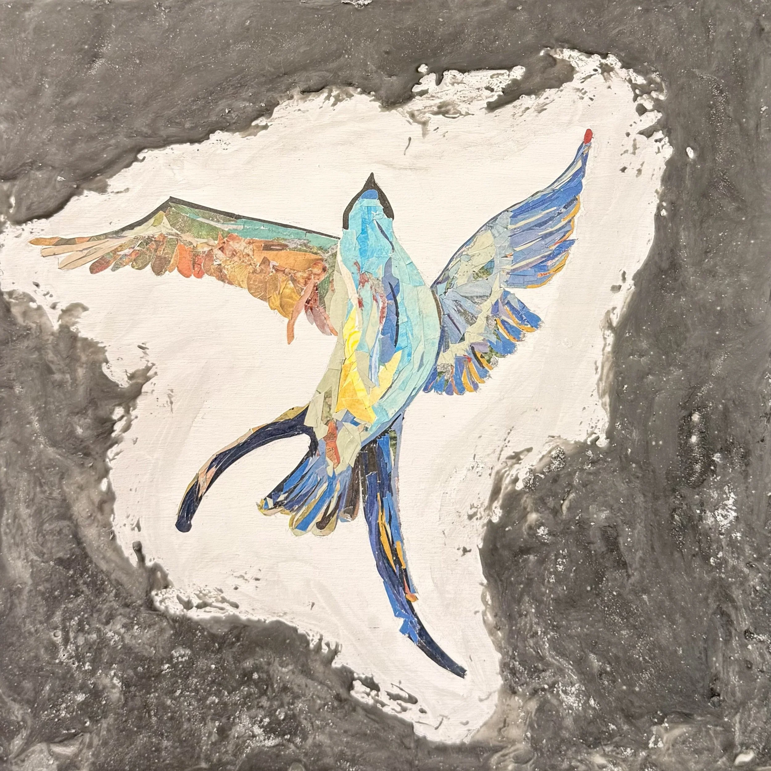 Through my experience making this art piece, I was able to represent the bird struggling to escape the darkness of climate change and pollution. This art piece carries a message about the state of our environment becoming increasingly dangerous to every animal on earth because of Earth becoming more polluted every day. The colorful bird resembles the hope and beauty that can be easily taken away from this world. The bird's colors represent the experiences it has had in its lifetime. Given that the colors are very beautifully put together, we can infer that the bird has had many wonderful memories.