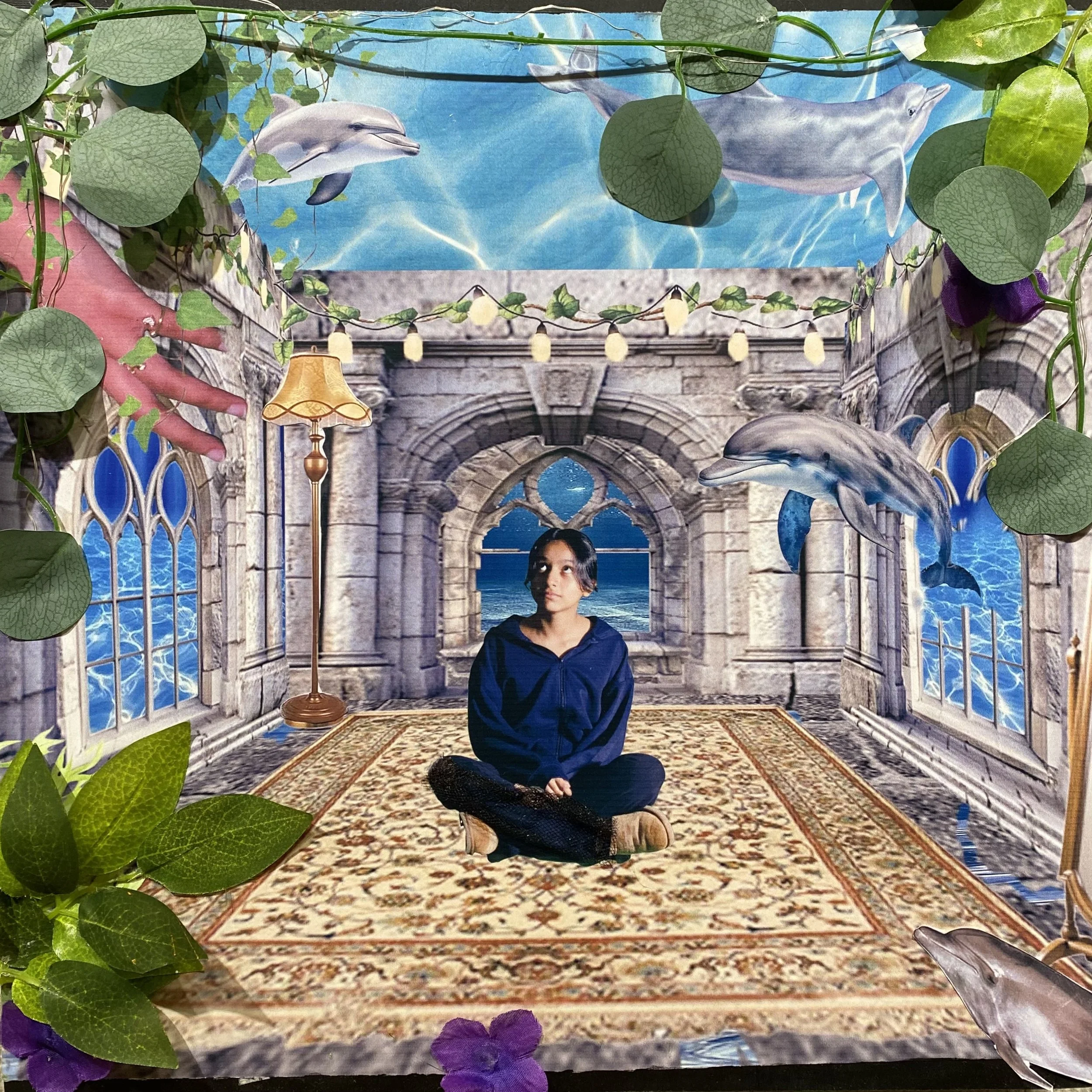 Melody Sanchez, Surreal Room, magazines, paint, leaves, hot glue gun, $140