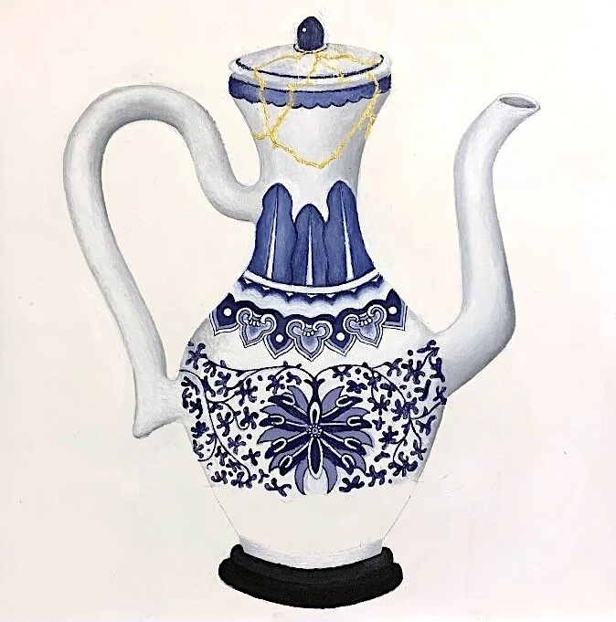 I’ve always admired this vase from afar in fear that I might accidentally break it if I got too close. Upon examining it up close for the first time, to my surprise, someone had already beat me to it. The golden, cracked porcelain piqued my curiosity. After looking more into it, I found out that the previous resident of my house was an elderly Japanese woman who left the vase for my family to keep. The title, Kintsugi refers to the traditional Japanese art of mending broken pottery using golden powder mixed with lacquer to stick the pieces back together. The philosophy behind this is to embrace flaws and imperfections.